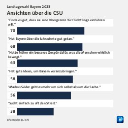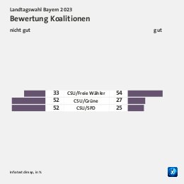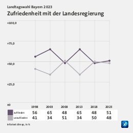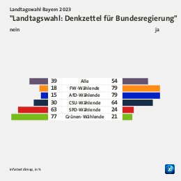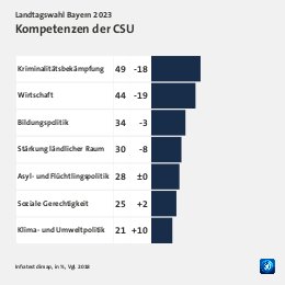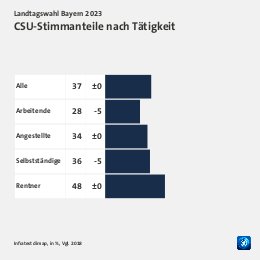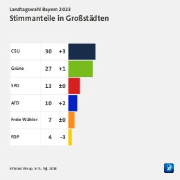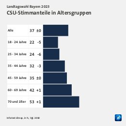 Landtagswahlen in Bayern 1946-2023 (Werte von 2023, in %): CSU 36,8 , Grüne 15,9 , FW 14,1 , AfD 15,2 , SPD 8,4 , FDP 3,1 , BP 0,0 , NPD 0,0 , GB/BHE 0,0 , BHE-DG 0,0 , WAV 0,0 , Quelle: tagesschau.de
